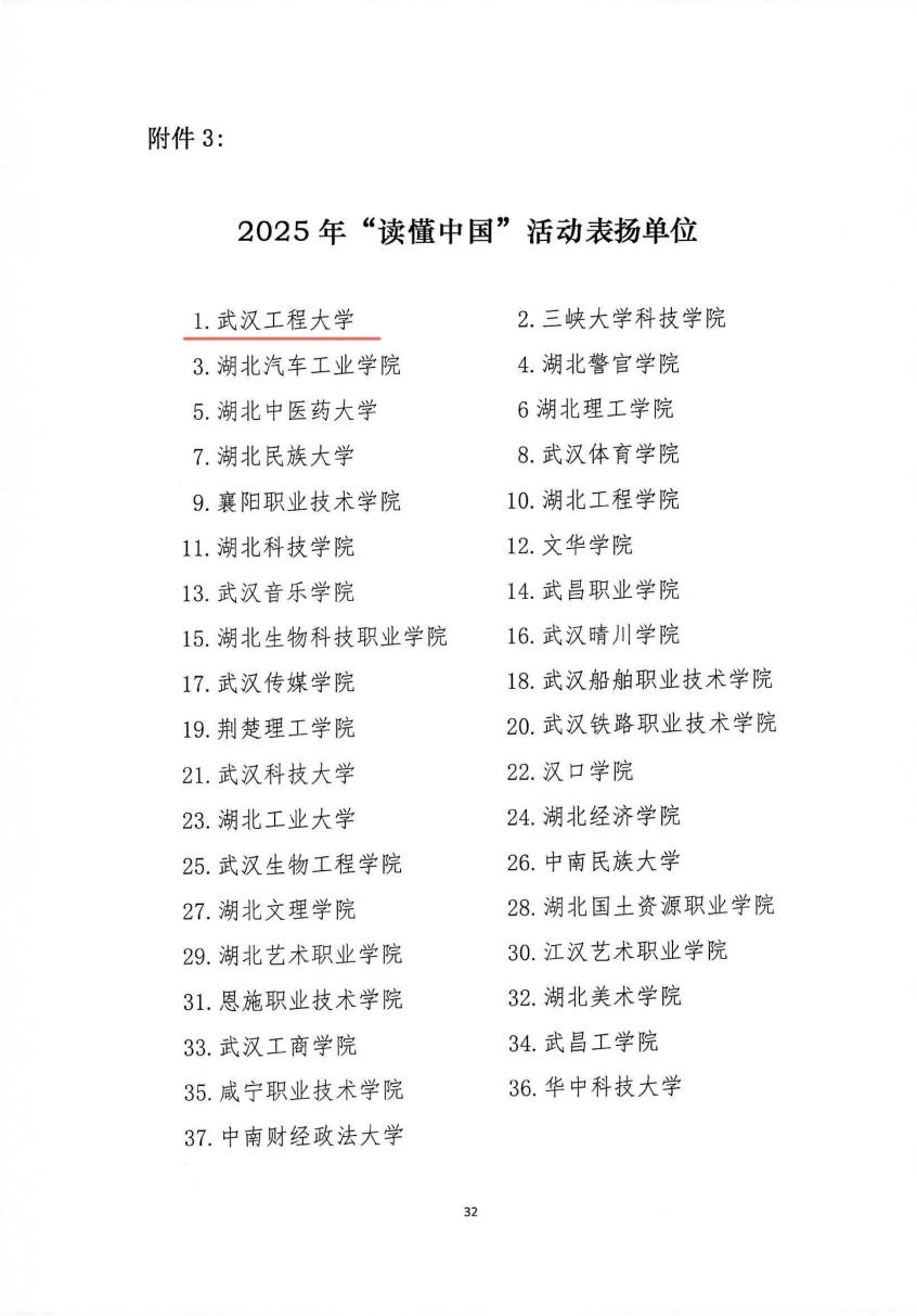 武汉工程大学“读懂中国”活动获奖情况表